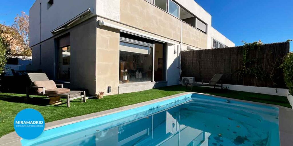 Miramadrid Servicios Inmobiliarios presenta este exclusivo Chalet adosado de esquina de diseño moderno, en parcela de 225 m², ubicado en una zona tranquila y bien comunicada de Miramadrid, Paracuellos de Jarama.