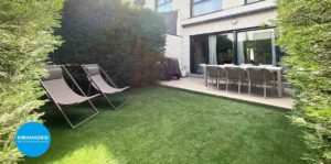 . Salón-comedor: es el núcleo de la vivienda, un espacio amplio y diáfano, que conectan visualmente el interior con el jardín, creando una sensación de continuidad y amplitud ideal para la vida cotidiana y social. Aseo de cortesía.