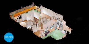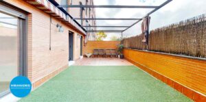 Iniciamos nuestra visita en un precioso hall que da paso a un amplio salón, muy luminoso y con salida directa a una terraza de 40 m² con césped artificial y toldos, ideal para compartir una tarde en familia y con amigos en cualquier época del año.