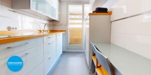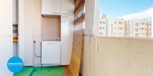 Iniciamos la visita en un hall de entrada con un armario empotrado, que da acceso a un vistoso salón comedor y a una espaciosa cocina amueblada con office. Tiene una coqueta terraza que conecta con el salón comedor, donde descansar después de una larga jornada de trabajo y con la cocina, muy práctico para facilitar tu colada diaria.